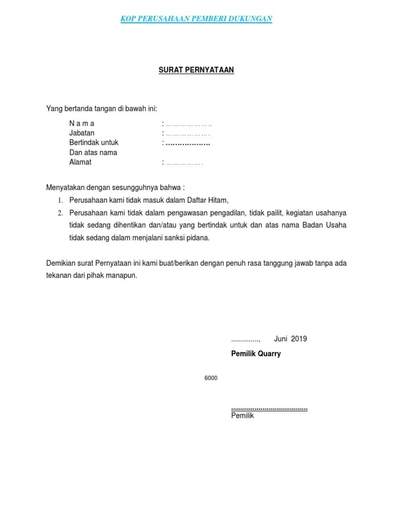 Contoh Surat Pernyataan Perusahaan Tidak Sedang Pailit – Di mana tertulis bahwa perusahaan akan selalu menaati peraturan dan hukum yang berlaku mengenai usahanya dan perusahaannya. Dokumen asli pernyataan pengakuan tertulis bahwa perusahaan yang bersangkutan dan manajemennya atau peserta perorangan tidak dalam pengawasan pengadilan tidak pailit kegiatan usahanya. Saya perusahaan saya dan manajemennya tidak pernah dihukum dan tidak dalam pengawasan pengadilan berdasarkan putusan pengadilan atas tindakan yang berkaitan dengan kondite professional saya. Jenis surat pernyataan yang sangat beragam mungkin membuat anda merasa kebingungan ketika harus membuat salah satu jenis surat. Saya perusahaan saya dan manajemennya tidak sedang dinyatakan pailit atau kegiatan usahanya tidak sedang dihentikan. 15 contoh surat resmi perusahaan beserta penjelasannya untuk penggunaan pribadi maupun dalam menyampaikan informasi secara pribadi penggunaan surat memang sudah sangat jarang ditemukan..