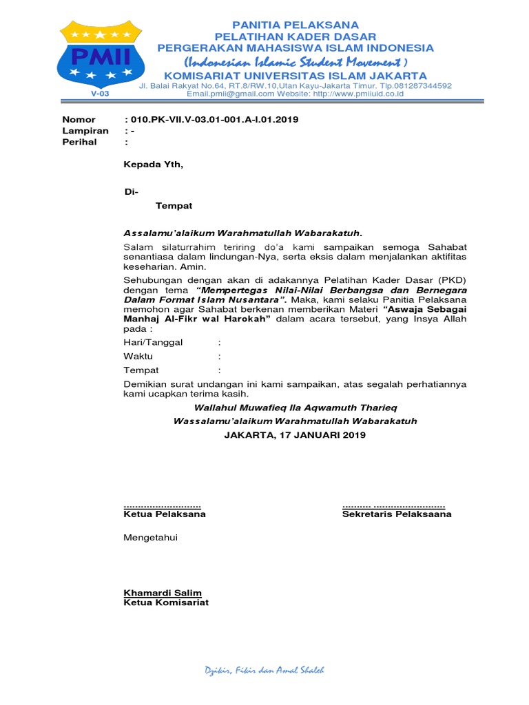 Surat Undangan Pemateri Pkd Komisariat Pdf