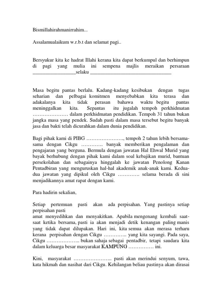 Teks Ucapan Guru Tuan Badan Nak Bersara Pdf