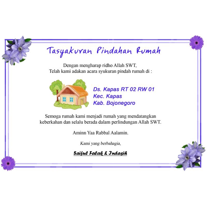 Contoh Surat Undangan Syukuran Menempati Rumah Baru It also will feature a picture of a sort that might be seen in the gallery of Contoh Surat Undangan Syukuran Menempati Rumah Baru. Kata kata ucapan selamat menempati rumah baru memang saat ini sedang banyak dicari oleh masyarakat disekitar kita salah satunya Anda. Congratulation on your new home.
