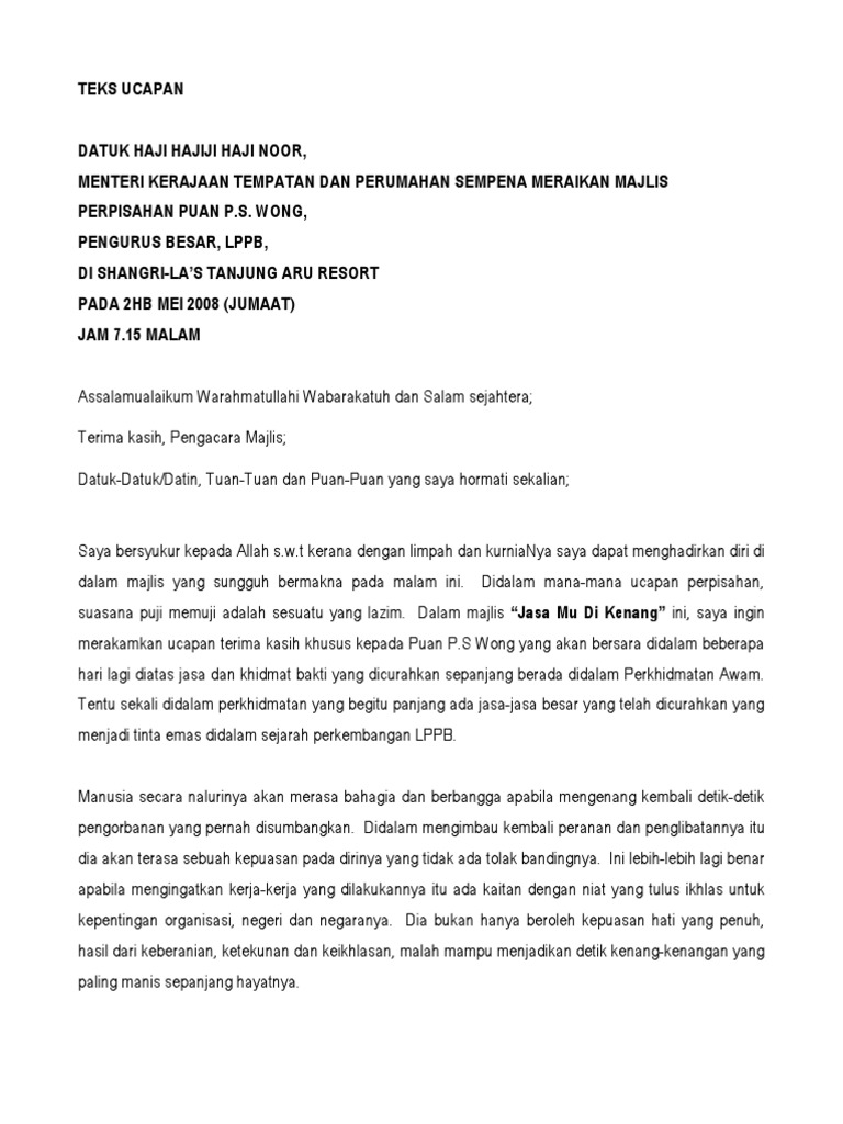 Teks Ucapan Majlis Perpisahan Persaraan Pdf