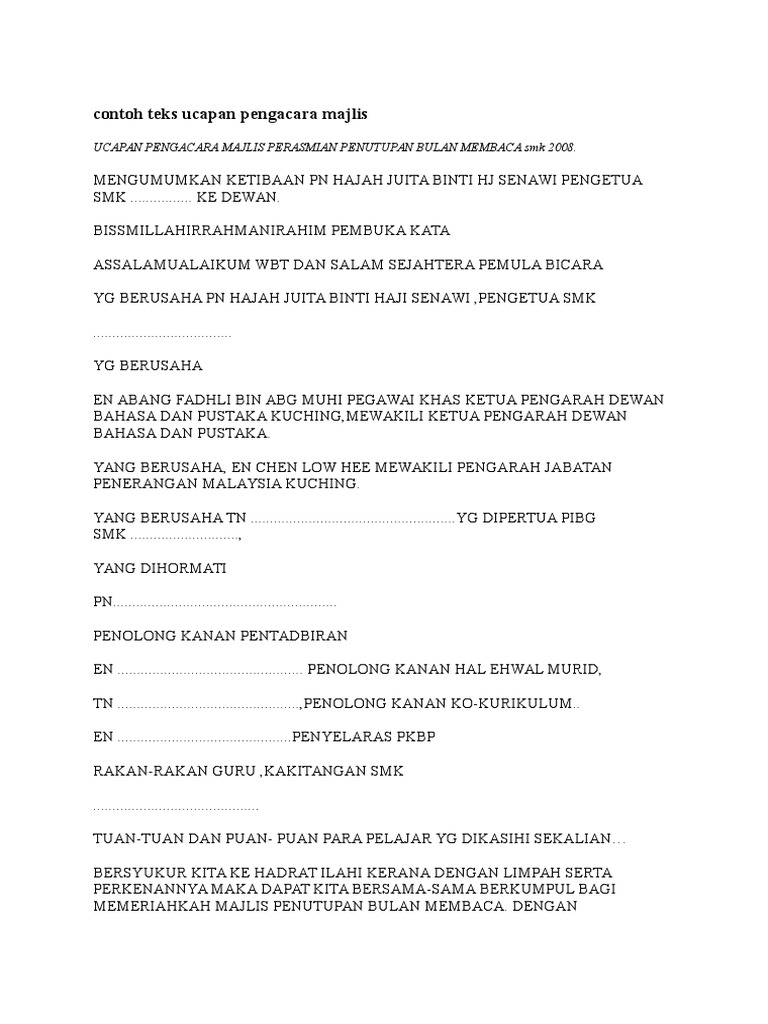 Teks ucapan pengerusi majlis contoh ps.