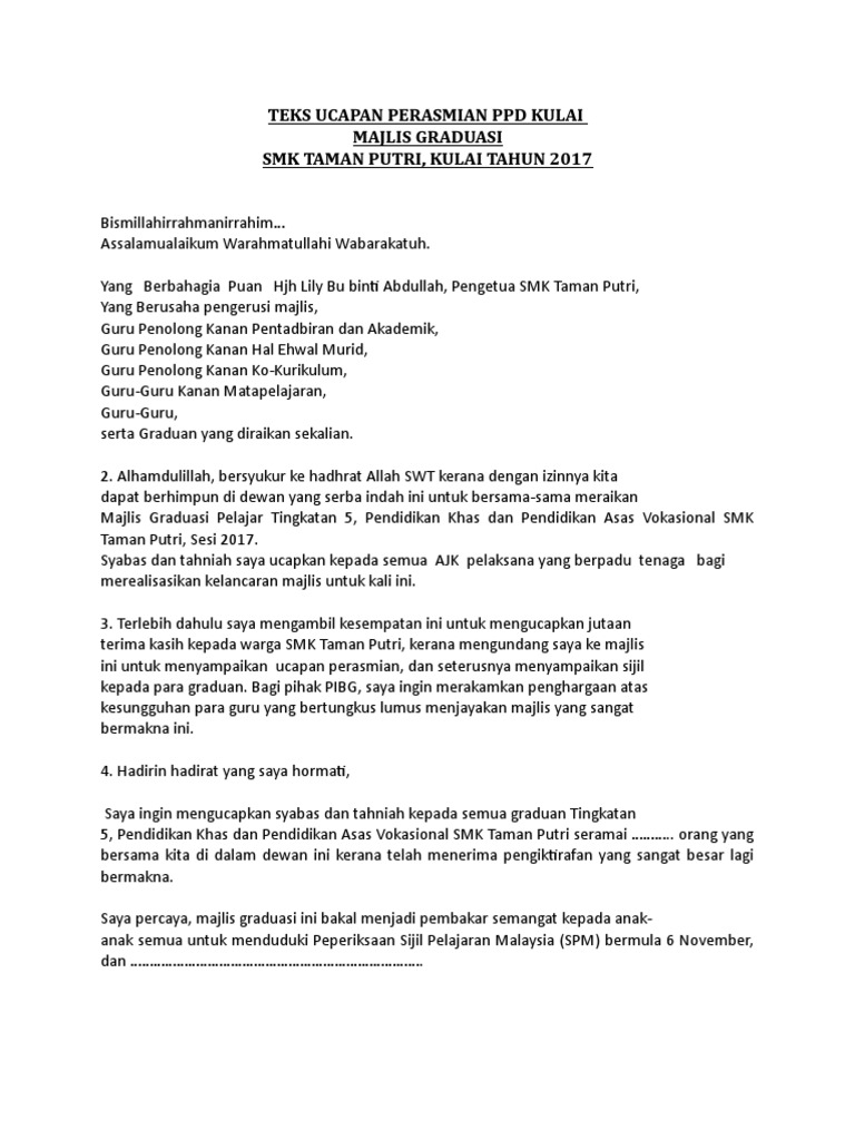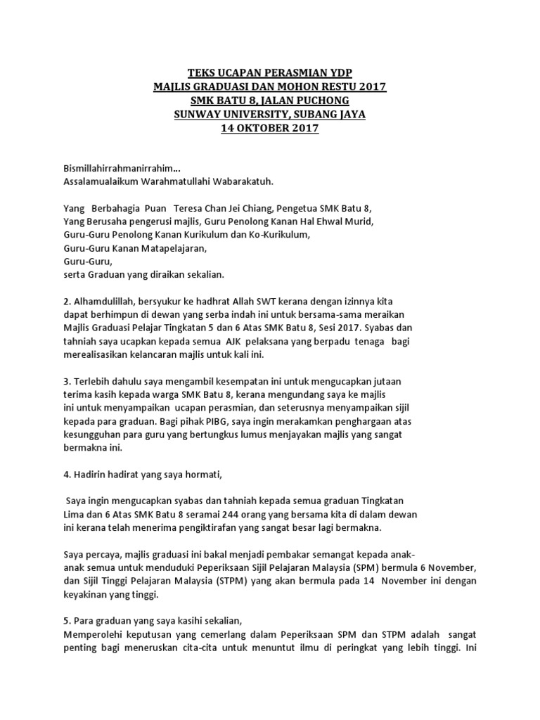 Teks Ucapan Perasmian Ydp Majlis Graduasi 2017 Pdf