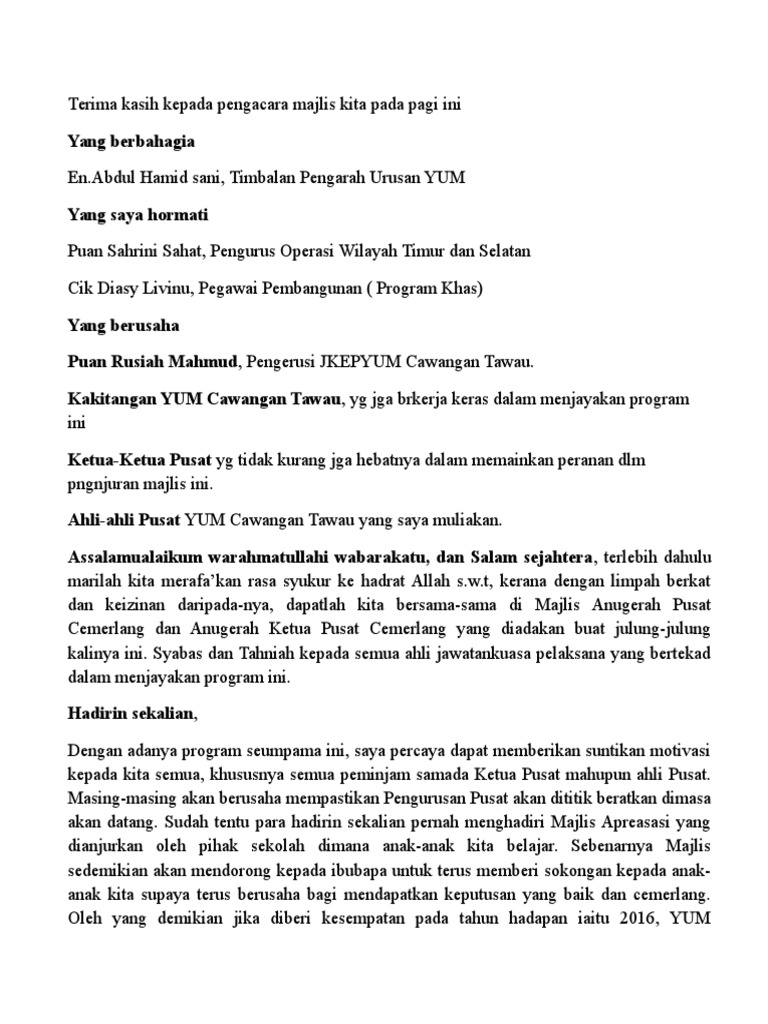 Graduan mengambil tempat Hadirin dipersilakan duduk. Girang rasa tidak terperi Bertemu tuan yang baik budi. Contoh teks pengucapan awam contoh ucapan ydp pibg.