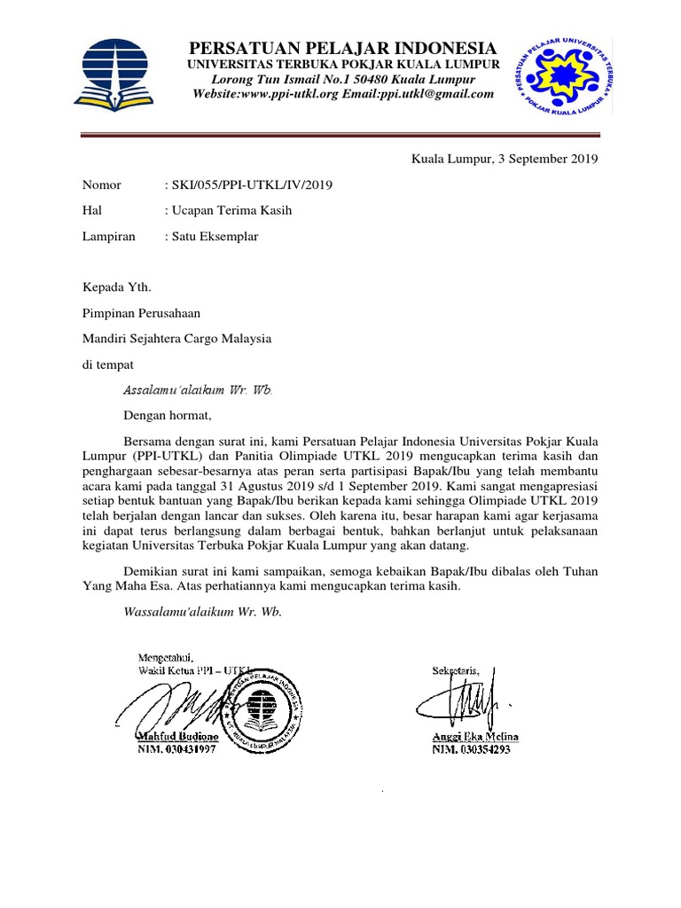 Contoh Surat Ucapan Terima Kasih Antar Lembaga Pdf