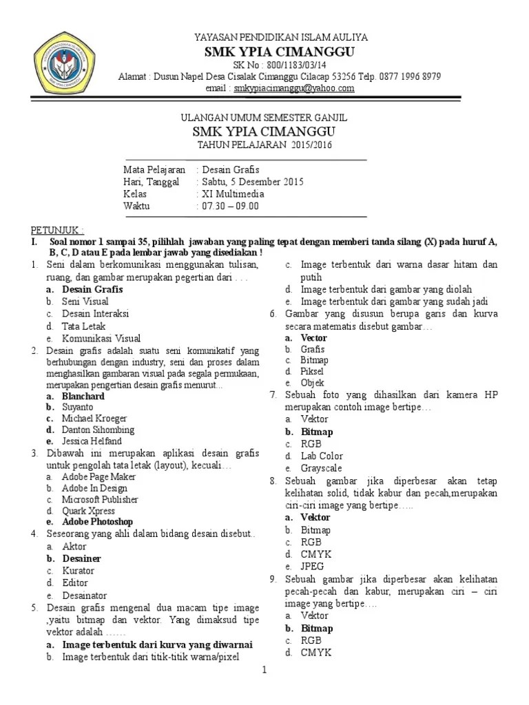 Soal soal latihan ukk desain grafis beserta jawabannya kelas x 2019 11 22 pm selamat datang di postingan saya sobat pintar kali ini saya akan share soal soal desain grafis kelas x terkait dengan ujian kenaikan kelas atau yang sekarang kita sebut dengan pas.