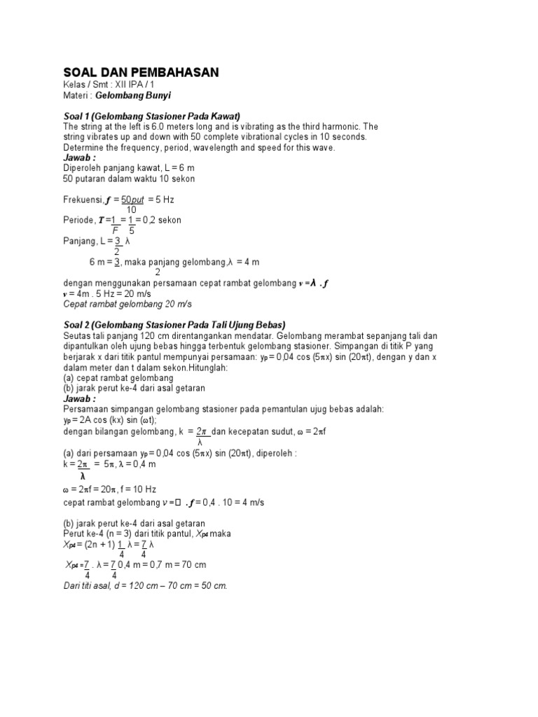 Soal Dan Jawaban Gelombang Bunyi Kelas 12 – Bisa di klik pada link dibawah ya. Download rangkuman contoh soal gelombang bunyi kelas xi 11 dalam bentuk pdf klik disini. Kumpulan soal dan pembahasan tentang bunyi untuk smp. C nomor 3 un 2013. Contoh soal soal fisika kelas 12 sma ma dan kunci jawabannya 2019 letakkan tanda silang x di depan huruf a b atau c sebelum jawaban yang benar. Home fisika erlangga 12 kunci jawaban fisika erlangga kelas 12 gelombang bunyi disertai pembahasannya part 2 halaman sebelumnya sebelum lanjut mimin saranin buat yang udah kelas 12 untuk mencoba soal soal sbmptn tpa 2000 2017 dll yang disertai pembahasan dan rangkuman secara cuma cuma..