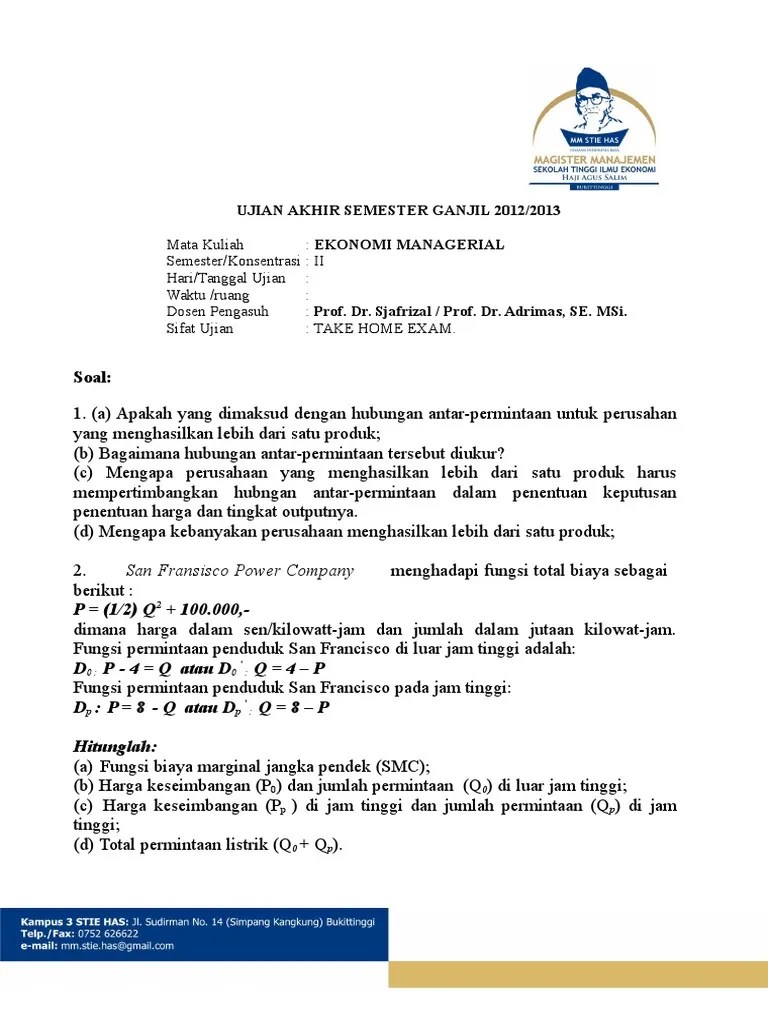 Soal dan jawaban mata kuliah ekonomi manajerial. Berikut ialah riset pasar pendapatan rata rata pedagang bungan dan. Ekonomi manajerial hari tanggal. 92688892 jawaban uas ekonomi manajerial lengkap doc soal dan.