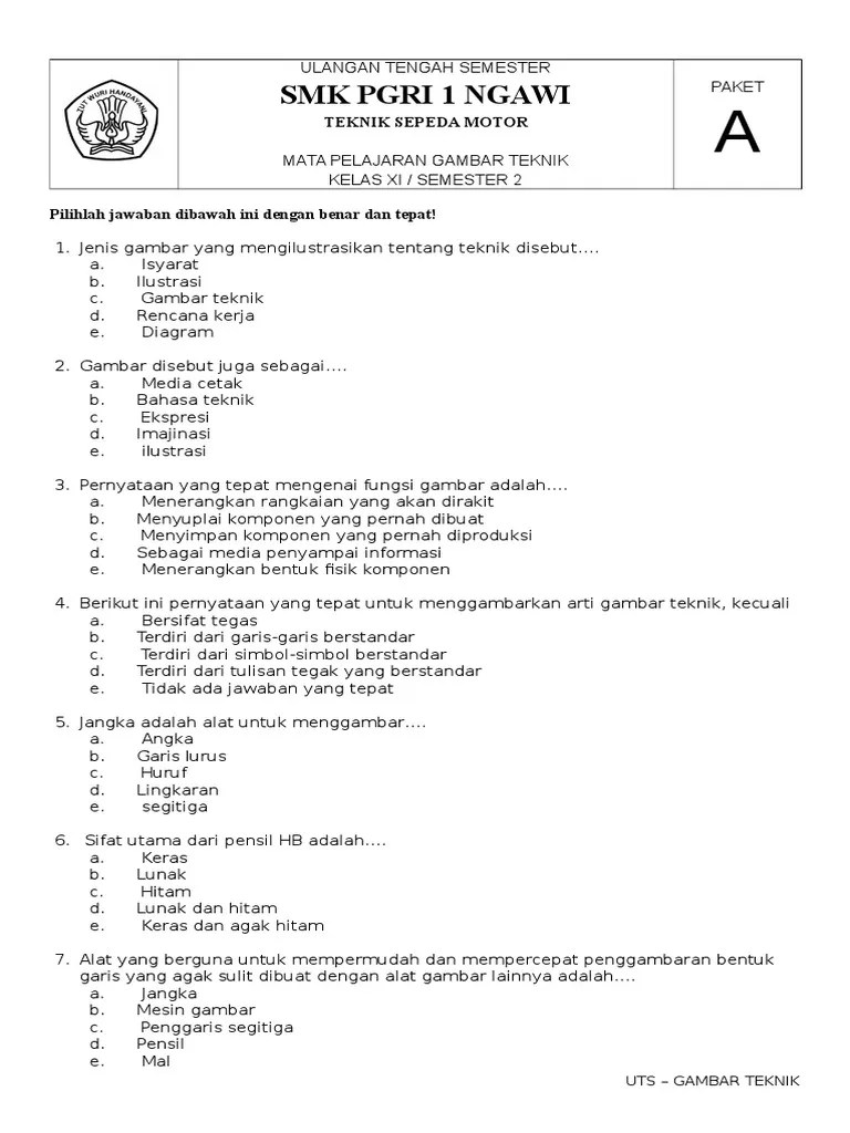 Soal Dan Jawaban Pilihan Ganda Gambar Teknik Mesin – Soal pilihan ganda sejarah indonesia jawaban hai tech lover kembali lagi bersama kami dan kali ini kita akan membahas tentang soal ra. Soal uas gambar teknik mesin ini dibuat sebagai acuan dalam mengetahuai akan keterserapan materi pelajaran yang diajarkan. Besaran turunan 1 besaran sklar 2 besaran vektor b. Komponen tegak lurus suatu gaya 5. Buku sekolah elektronik 18. Inilah pembahasan lengkap terkait contoh soal dan jawaban dinamika teknik mesin..