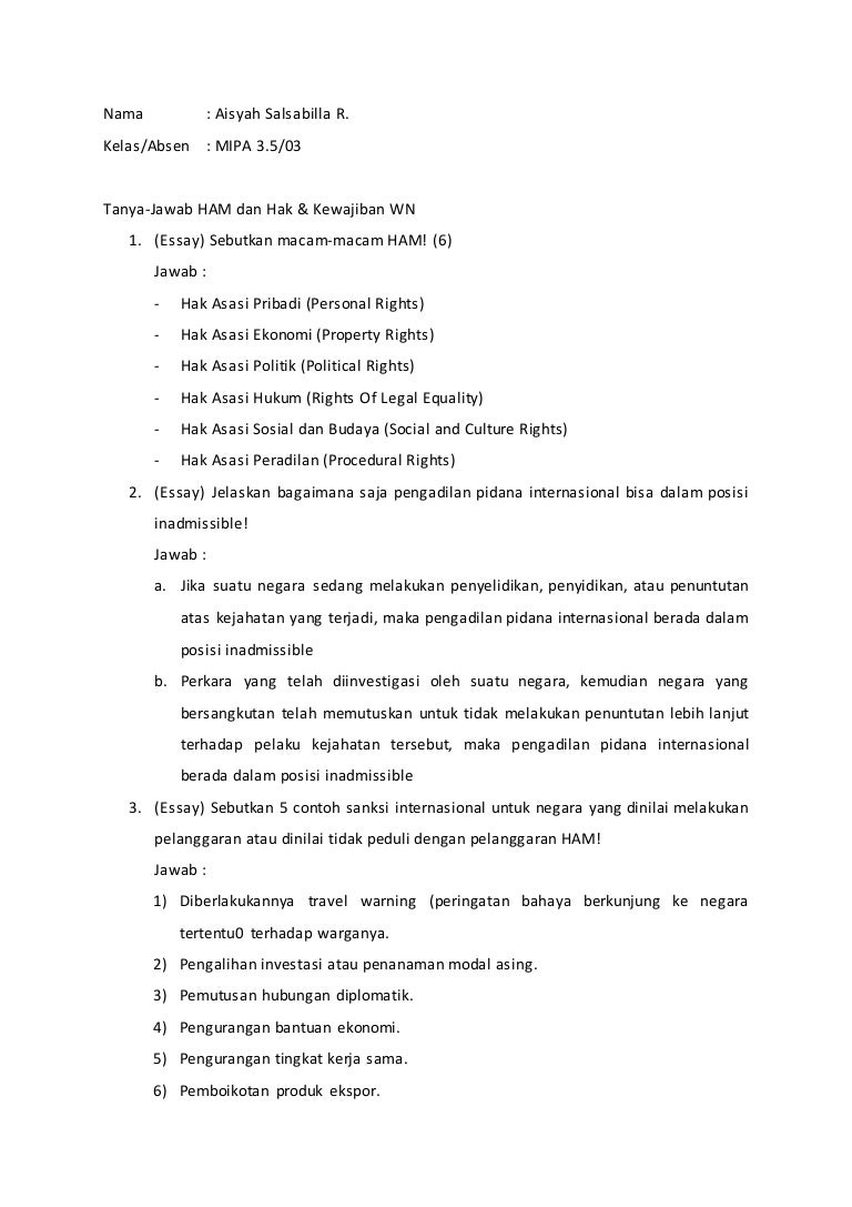 Soal hak dan kewajiban warga negara ini adalah salah satu hal yang wajib kamu tahu dimana admin blog soal kunci jawaban menyampaikan soal hak dan kewajiban warga negara kepada teman teman semua yang saat ini mencari soal hak dan kewajiban warga negara dengan ini maka kamu akan tahu selengkapnya pembahasan soal hak dan kewajiban warga negara tersebut. Soal essay tentang hak dan kewajiban warga negara beserta jawabannya pelanggaran hak dan pengingkaran kewajiban berikut ini soal lks essay pkn hak kewajiban kurikulum2013 beserta kunci jawabannya untuk siswa sma smk ma mak sederajat. 27 ayat 3 c.