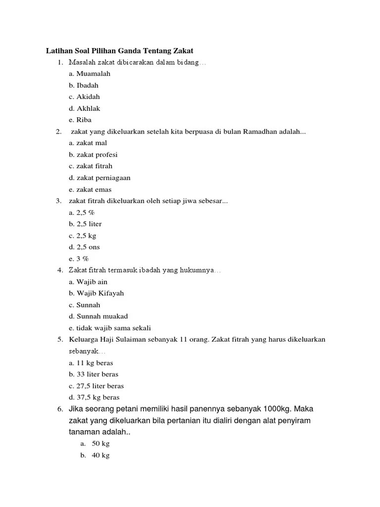 Soal Dan Jawaban Tentang Zakat – Soal zakat tentunya ini akan menjadi pelajaran yang sangat berarti sekali untuk kamu semua yang lagi mencari soal zakat tersebut di sini. Berkembang dan melimpah e. Kami membas soal zakat lengkap untuk anda bisa pelajari langsung nantinya sehingga bisa membatu pelajaran buat anda semua. Suci dan tumbuh b. Semua hak dilindungi milik website soal jawab tentang islam 1997 2020. Setelah memenuhi nisab dan haulnya d..