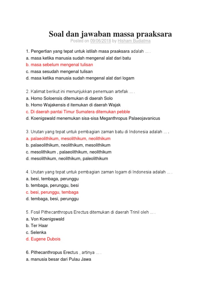 Latihan soal pilihan ganda tentang zaman pra aksara lengkap jawaban. Zaman logam yaitu suatu zaman dimana manusia menggunakan alat alat yang terbuat dari logam. Dayak toraja dan mentawai.