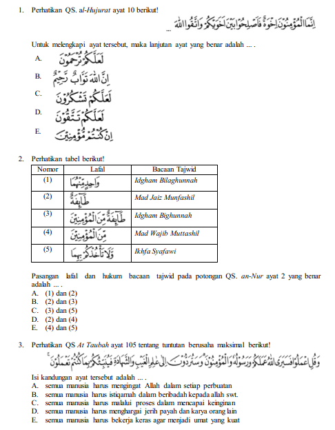 Soal dan jawaban usbn agama islam smk 2019. Soal dan kunci jawaban soal pai soal usbn sma. Pilihlah salah satu jawaban yang benar dengan memberi tanda silang x pada huruf a b c d dan e. Tuesday october 30 2018 add.
