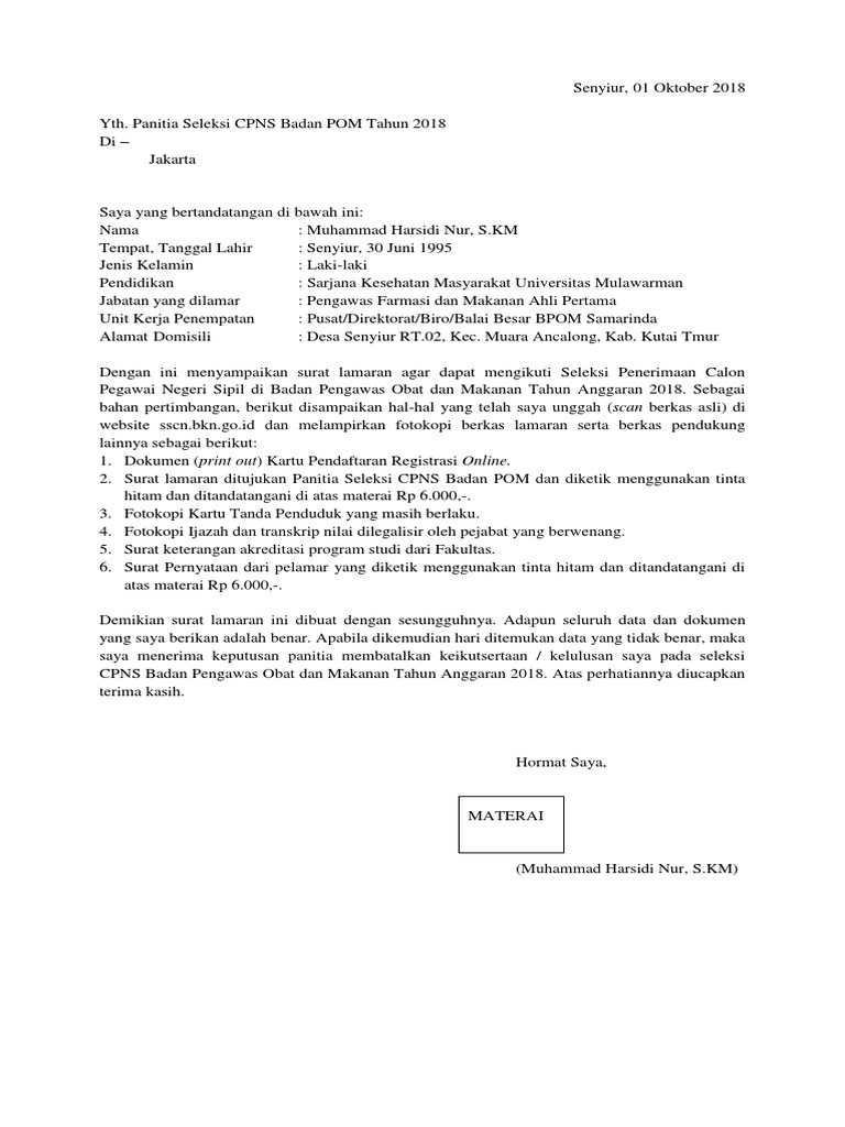 Lowongan kerja non cpns badan pom surat lamaran pas photo berwarna resmi terbaru. Contoh surat lamaran cpns bpom mxbids. Surat permohonan format terlampir 2.