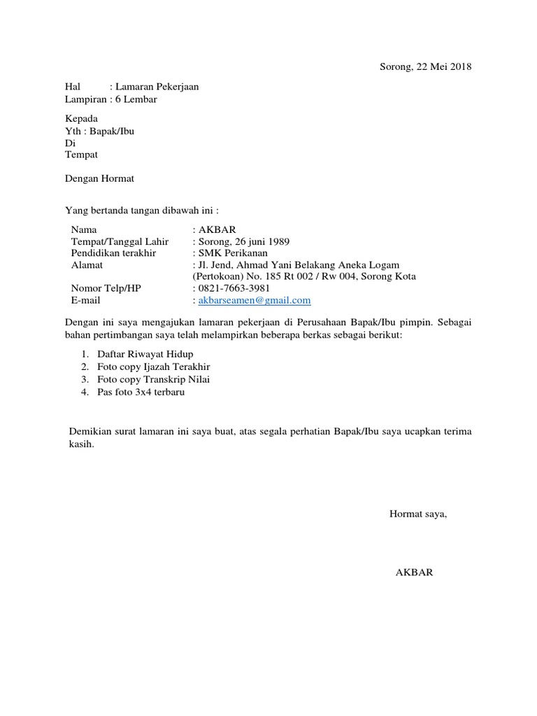 Contoh Surat Lamaran Kerja Dan Cv Akbar Pdf